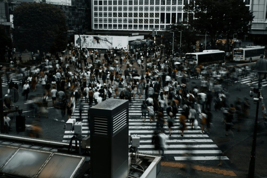 毎日朝晩の通勤、放蕩する者への容赦ない疎外、黒スーツの行進はアリさながらである。
